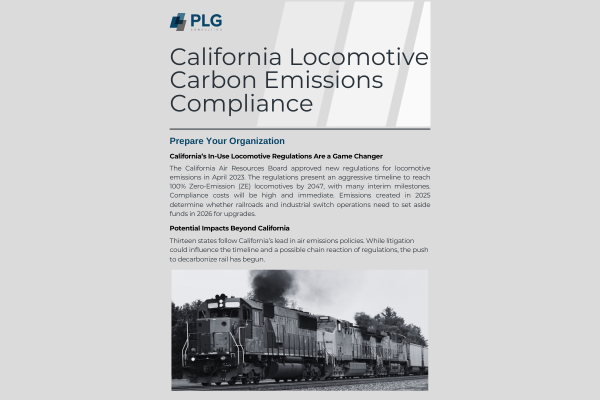 As the locomotive industry evolves to meet these stringent regulations, the fact sheet serves as a beacon, guiding organizations through the complexities of compliance and adaptation. Whether you operate in California or a state likely to follow its lead, understanding these regulations and planning accordingly is essential for the future of rail transport. Stay informed and download our comprehensive fact sheet to delve deeper into PLG’s findings.
