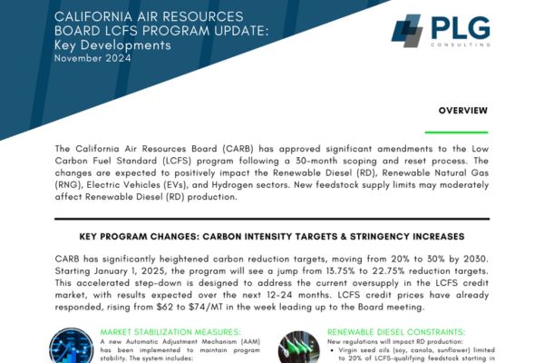 Download PLG's November 2024 CARB LCFS program update and its key developments affecting renewable fuels.
